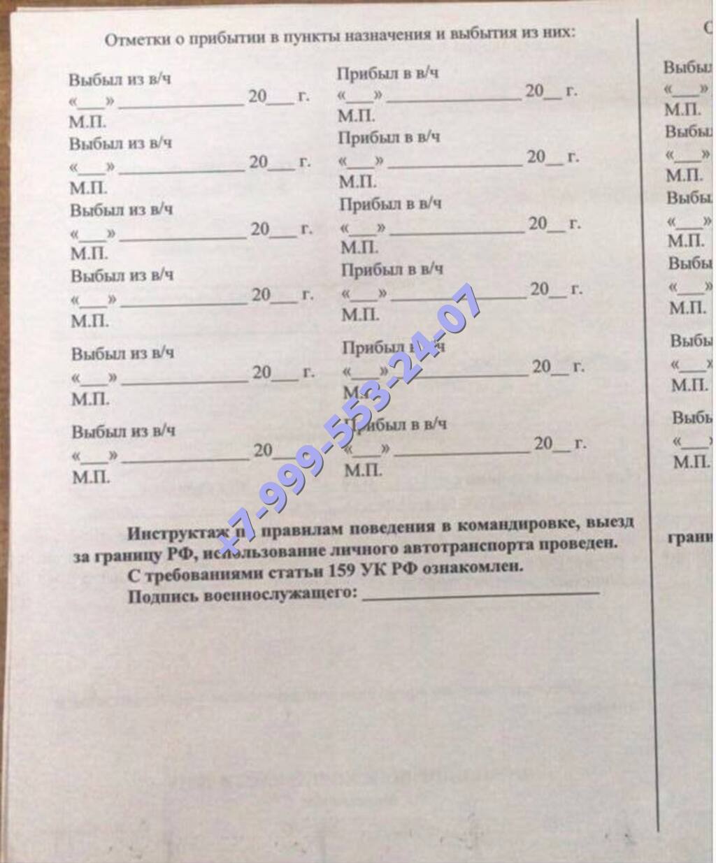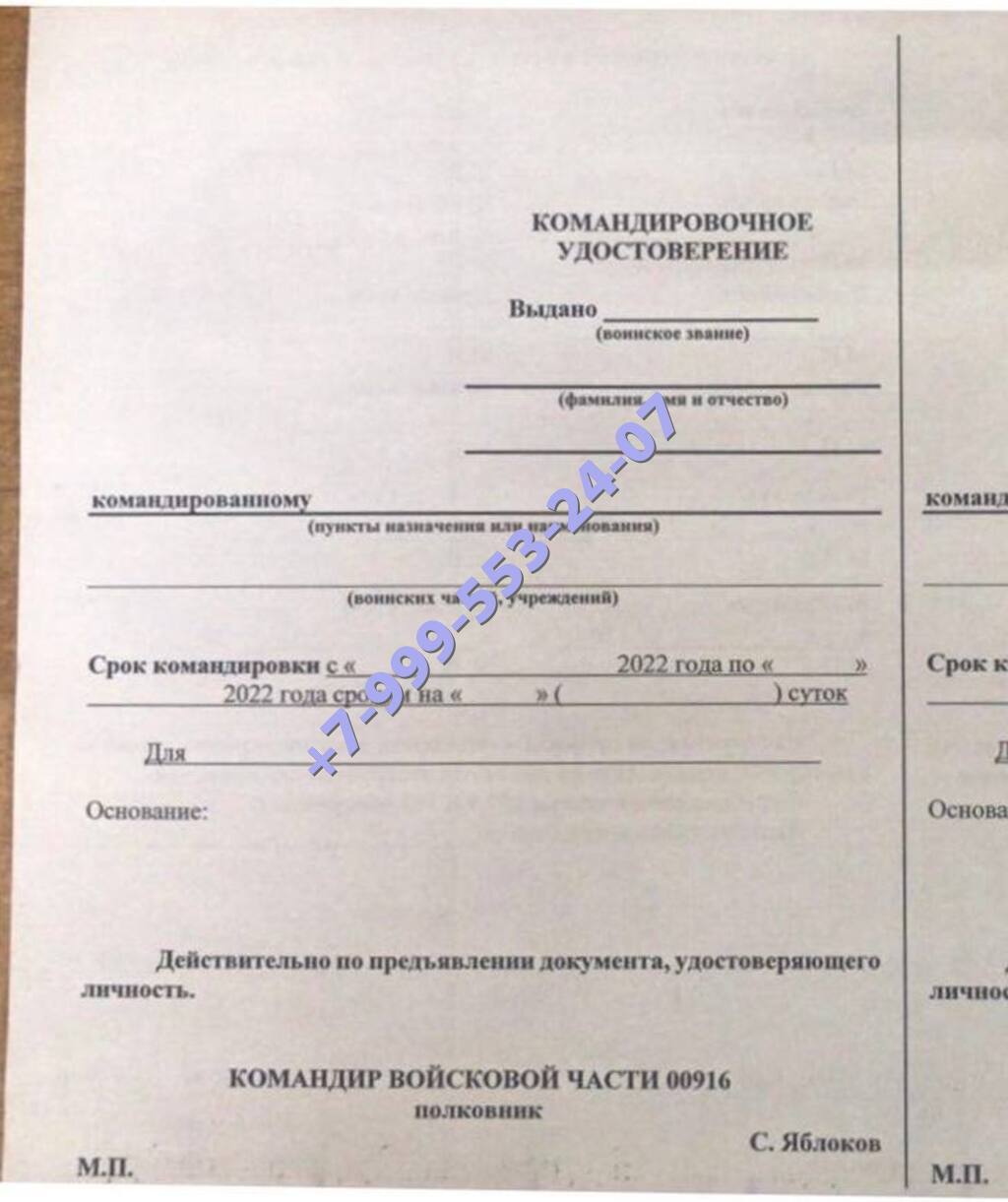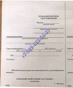 Заказать командировочное удостоверение военнослужащего в Кологриве можно и по иным причинам, например, необходимо срочно ехать на учения или в зону боевых действий. В таком случае следует обращаться к руководству с заявлением. Если человек потерял, или испортил документы, он может обратиться в нашу компанию. Купить командировочное удостоверение военнослужащего с доставкой мы предлагаем недорого.